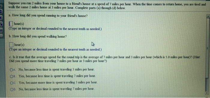 At 1.5 mph for 2 minutes than at 1.0. On the first magic mile, warm up as usual and then run or walk 1 mile (1.6 kilometers) slightly faster than your normal pace. Divide your run distance by your run time; 20 minutes for 2 miles obviously, not 1 as some morons have suggested. However, with regular breaks, some endurance horses can run as far as 100 miles in 24 hours. A lot of newbies start their running programs by alternating walking and running at least 2 to 3 times every week for a month before you can run 2 miles. So, the faster you can get that mile time down the better your chances. My best marathon time (2.19.35) is 5.19 per mile pace for 26.2 miles. Since you have a goal of three miles, use distances instead of times. This free pace calculator computes pace, time, and distance, given values for two of the variables. If you're already eating a balanced diet with an appropriate number of calories, that could work out to more than 2 pounds of weight lost per month. Work up to three miles of running for as long as you can at your goal pace. The 2 mile (10,560 feet or 3,218.688 metres) is a historic running distance.